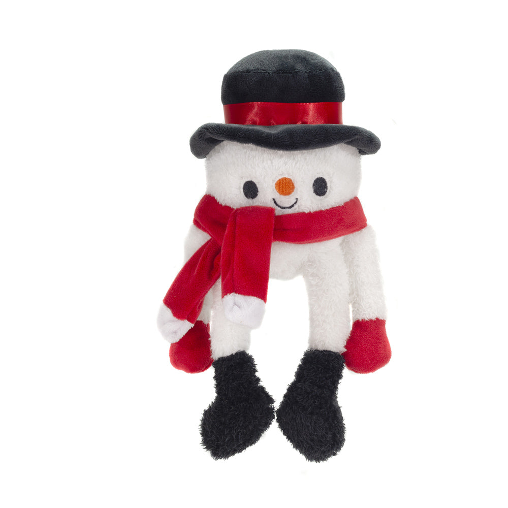 Meet Frosty Jr. the snowman! Perfect for Christmas decor or gifting. Bean bag snowman plush wearing a hat, scarf & mittens 8.5"